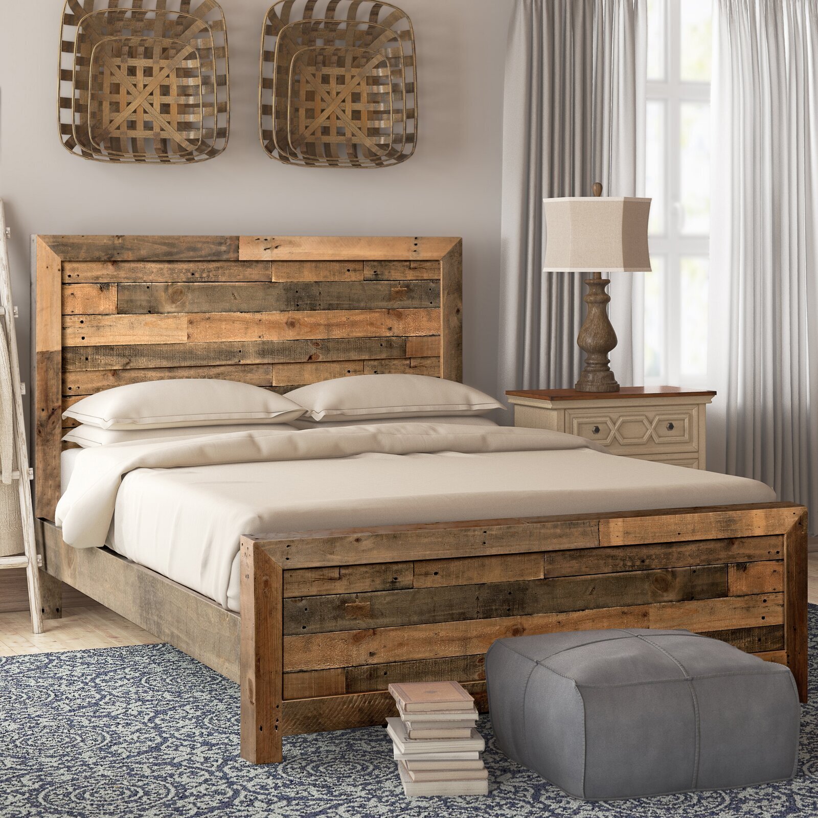 A rustic pine bed frame offering warmth and charm to any bedroom.